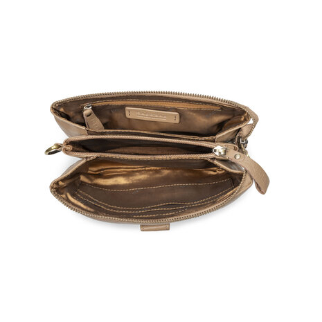 Het model Dover is één van de favorieten van Bag2Bag en dat is niet voor niets! Je kan het tasje aan de schouder dragen door middel van de verstelbare schouderband, maar dankzij het gevlochten polsbandje is deze handige tas ook als clutch te gebruiken. De tas heeft 3 ruime binnenvakken welke afsluitbaar zijn met een rits. Het middelste binnenvakje heeft nog een extra rits ter afsluiting. De andere 2 binnenvakken heeft meerdere insteekvakjes en een ritsvakje. Aan de voorzijde zit ook nog een insteekvak met een magneetsluiting. Het tasje is gemaakt van soepel leer en verkrijgbaar in de kleuren