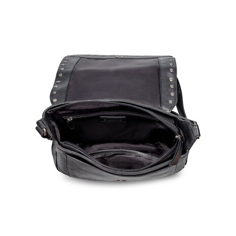 De zwarte Vardo is elegant, maar met een stoere touch dankzij de studs op de overslag. De ritssluiting houdt je essentials veilig opgeborgen, terwijl het compacte formaat zorgt voor optimaal draagcomfort. Een echte allrounder die moeiteloos meebeweegt met jouw outfit en dag.