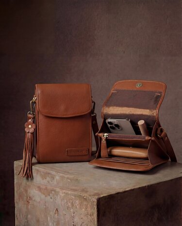 Telefoontasje Bali van Bag2Bag Cognac – stijlvol én verrassend ruim