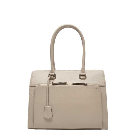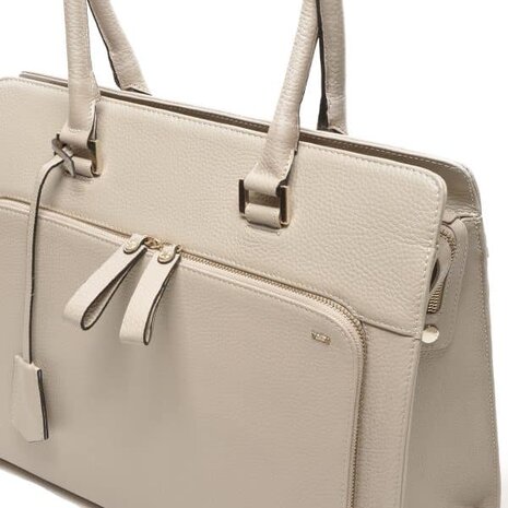 Met haar afmetingen van 38 x 30 x 16 cm biedt deze beige leren laptoptas precies de juiste balans tussen compact en ruim. Groot genoeg voor je werk essentials, elegant genoeg voor een zakelijke afspraak of lunch in de stad.