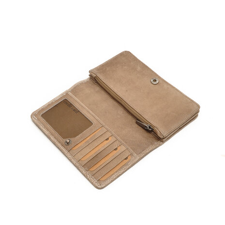 Onder de klep vind je ruime binnenvakken, waarvan één is voorzien van een ritssluiting voor extra veiligheid. In de klep zelf is plaats voor zeven pasjes, terwijl de binnenkant nog drie extra insteekvakken bevat voor pasjes, bonnetjes of andere essentials. Alles heeft zijn eigen plek, waardoor je portemonnee overzichtelijk blijft, ook bij dagelijks gebruik.